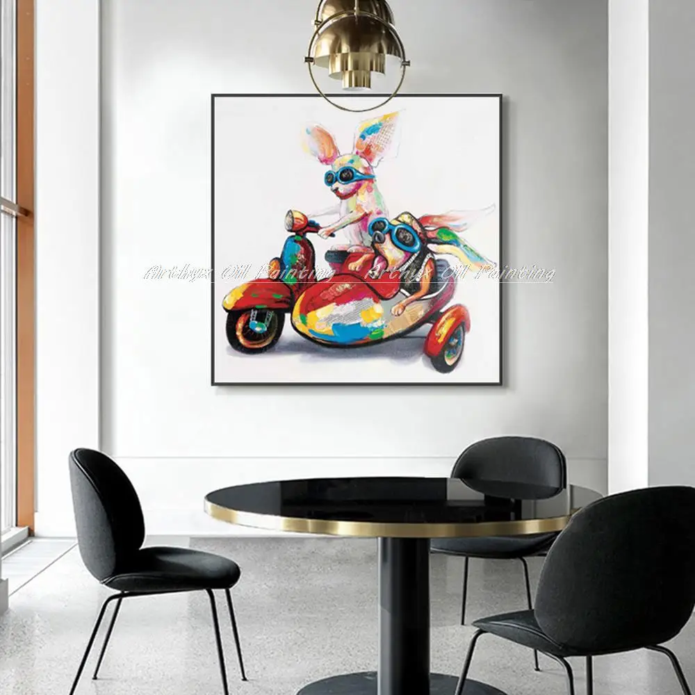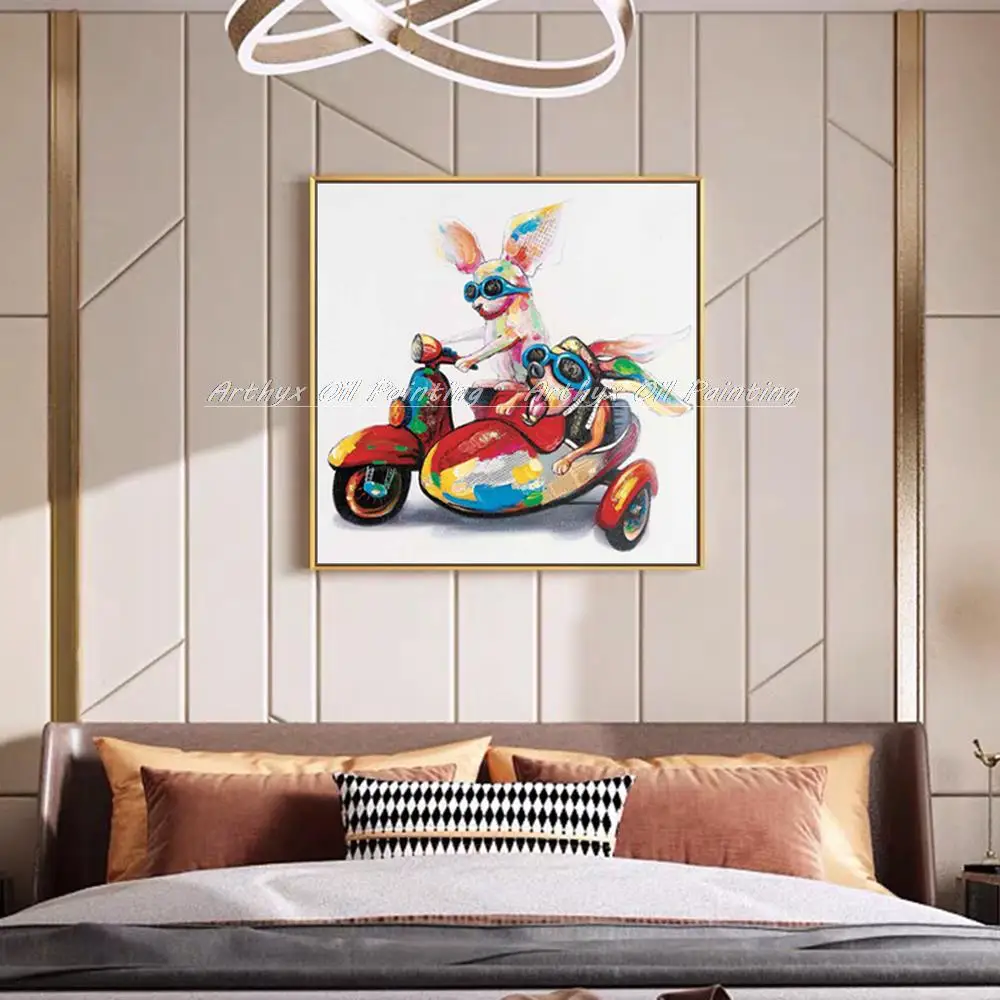 Arthyx поп-арт ручная роспись Собака Картина маслом на холсте Современный абстрактный мультфильм изображение животного на стене для кисд комнаты украшение дома