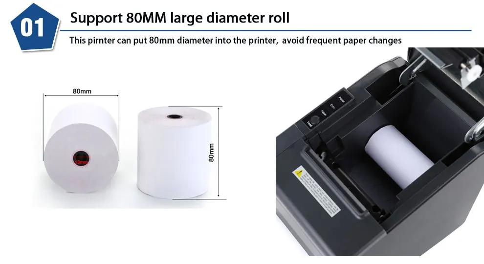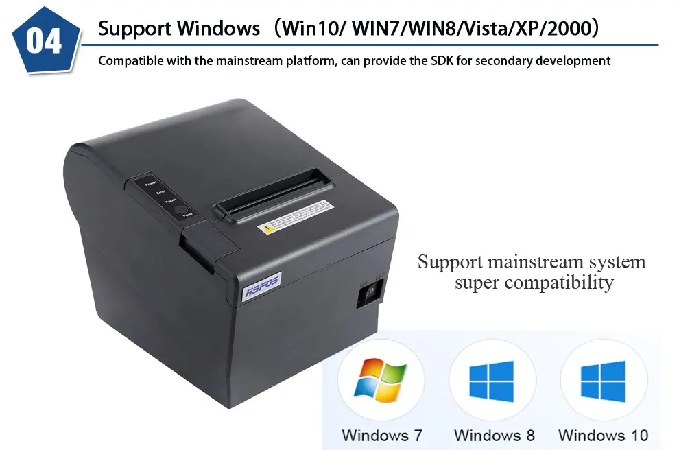 1. Название товара: Термальный чековый принтер 2. Подходит для всех типов коммерческих розничных POS систем 3. Легкий вес и умная форма 4. Высококачественная печать и низкая стоимость 5. Низкий уровень шума и высокоскоростная печать 6. Поддержка водителя денежного ящика 7. Поддержка автоматической резки бумаги 8. Простота установки Бумаги, простота обслуживания и отличная структура 9. Низкое энергопотребление и низкие эксплуатационные расходы (без лент или чернильных картриджей) 10. Поддержка загрузки и печати логотипа 11. Международный язык