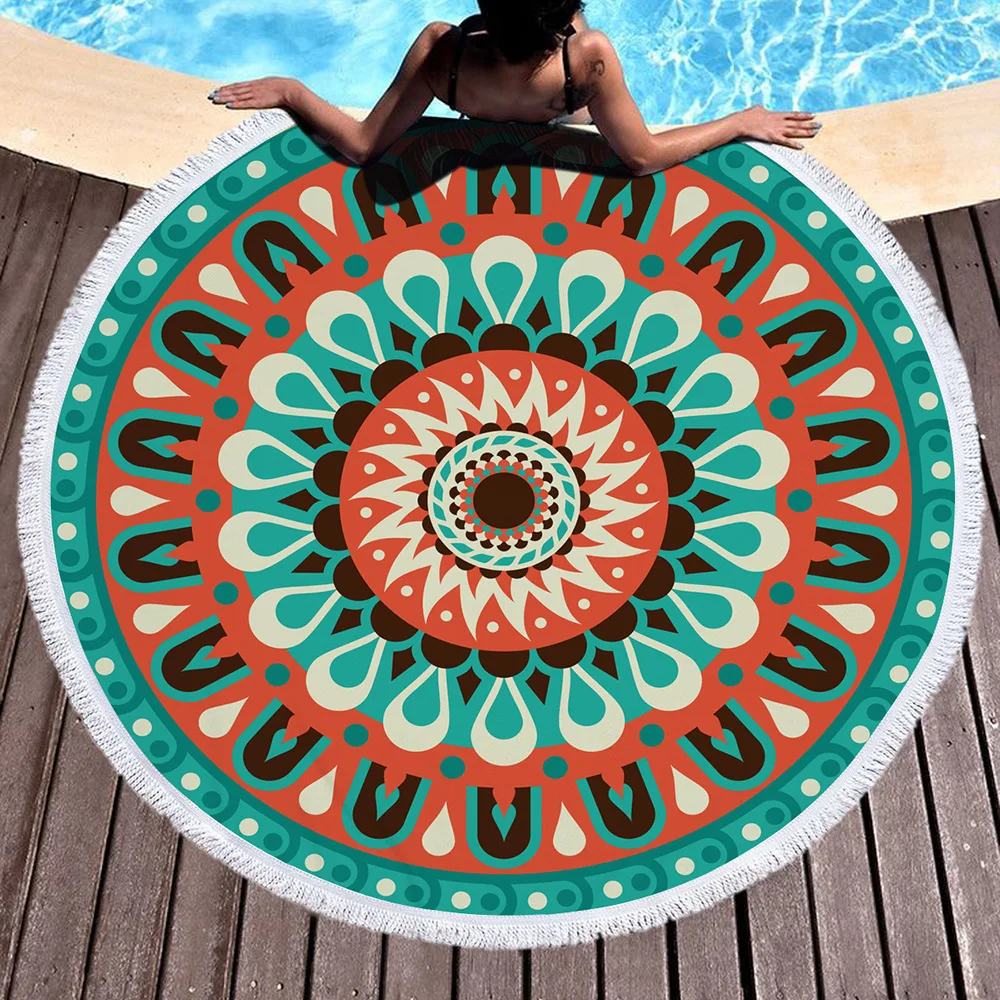Летние богемные геометрические узоры, круглый пляжное полотенце, индийские этнические микрофибры, кисточка для гостиной, настенный гобелен, плюшевые коврики для йоги, уличные коврики