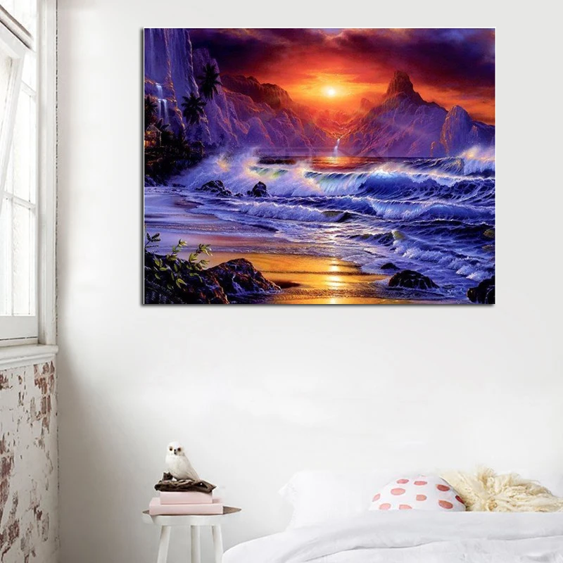 Алмазная вышивка 5D DIY алмазная живопись морской закат пейзаж Алмазная Картина Вышивка крестом стразы украшение