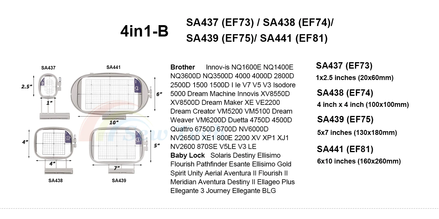 1. Швейные технологичные вышивальные обручи являются точными и прочными 2. Четкие маркировки на обручах для легкой справки 3. Регулируемый металлический винт на обруче поможет вам надежно закрепить широкий спектр ткани 4. Используется как идеальная замена старых обручей или есть дополнительные обручи для ускорения ваших проектов вышивки 5. Этот обруч совместим с Brother Dream Maker VM6200D VM2200 Quattro 6000D 6700D Luminaire XP1 innolis XV8500D XV8550D VM6200D NQ3500D NQ3600D NQ1400E nq16sh vp6200d bp1 Solaris XP1 pathfinder Aerial Altair Aventura II Flourish II Меридиан Авентура Дестини II путешествие и т. Д., швейная и вышивальная машина. Примечание: Пожалуйста, проверьте руководство вашей вышивальной машины «включая аксессуары» и «дополнительные аксессуары», если код части «SA448»/«SEF150»/«BLMA-150» включен, вы можете использовать этот обруч на вашей машине