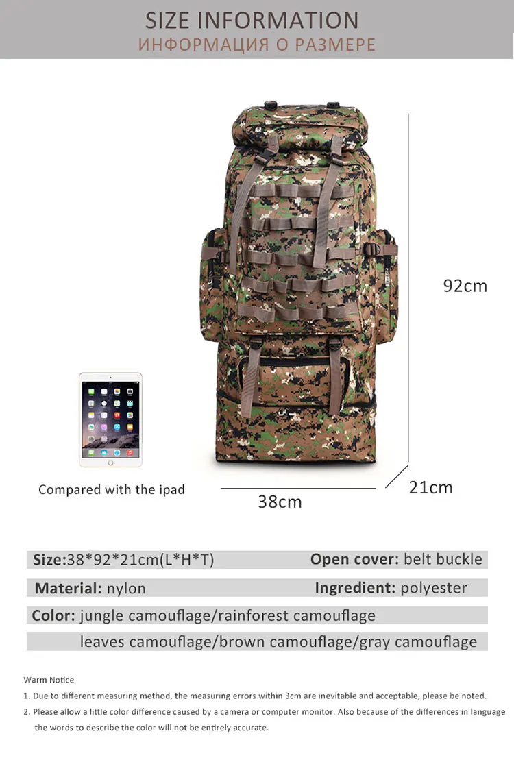 Открытый 100л большой емкости альпинистский рюкзак Кемпинг Туризм военный Molle Camo водоотталкивающая тактическая сумка Регулируемая