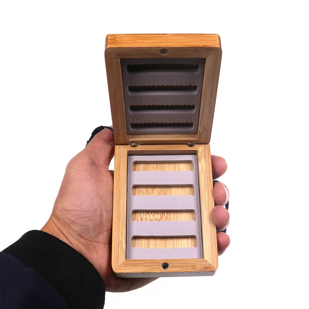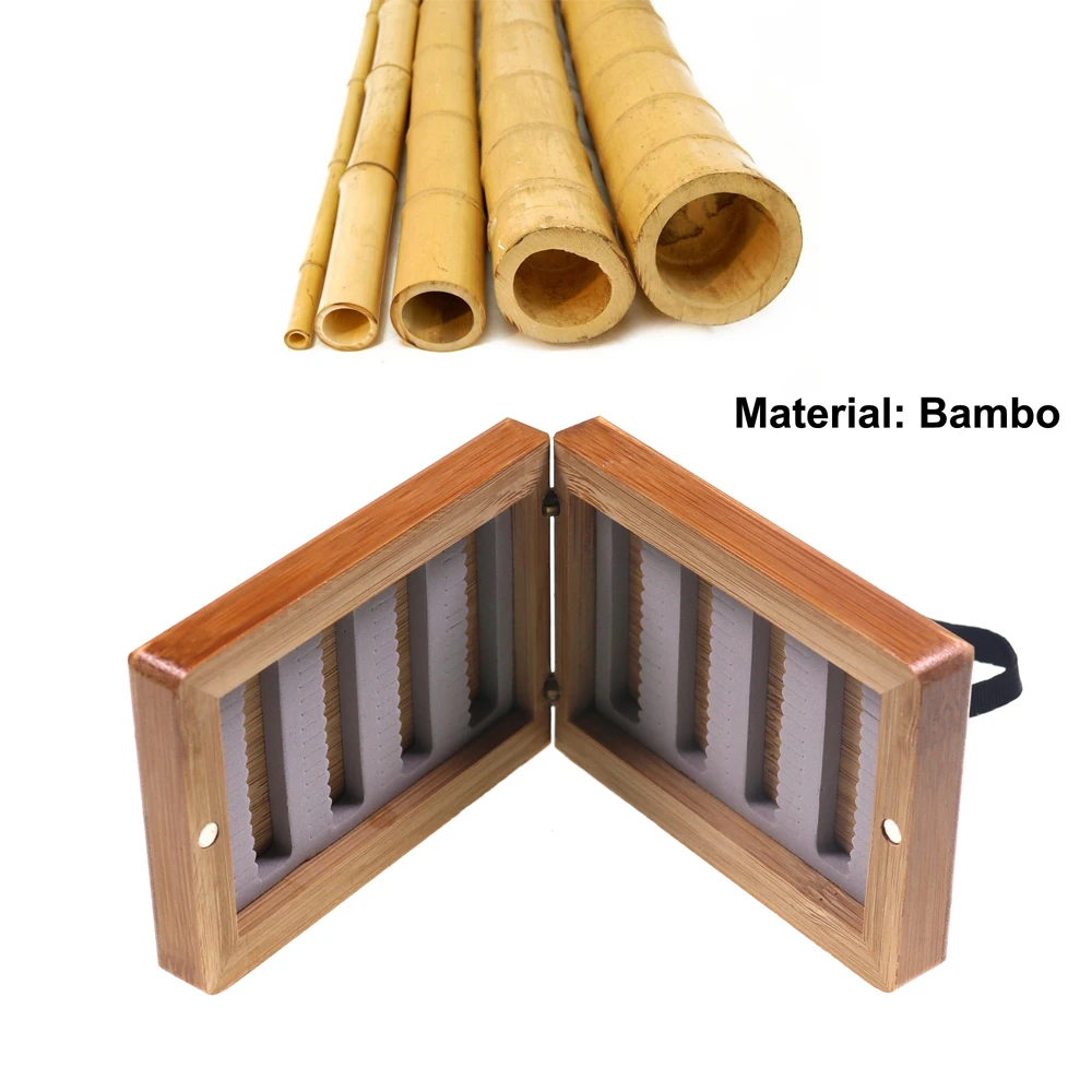 Бамбуковая традиционная летучая коробка Размер кармана, хорошо сделанный с бамбуком Размеры: 98mmX70mmX30mm; Двусторонний Для маленьких мух, nymph storage.
