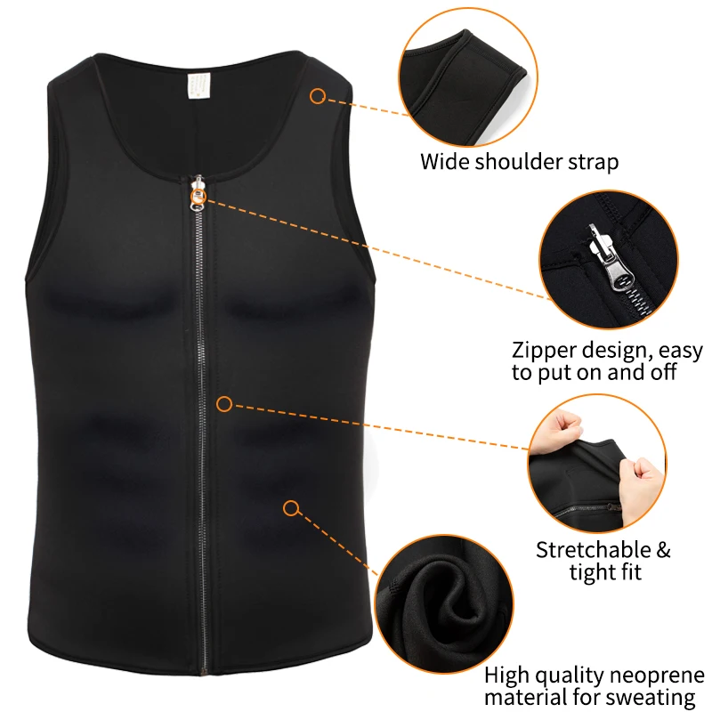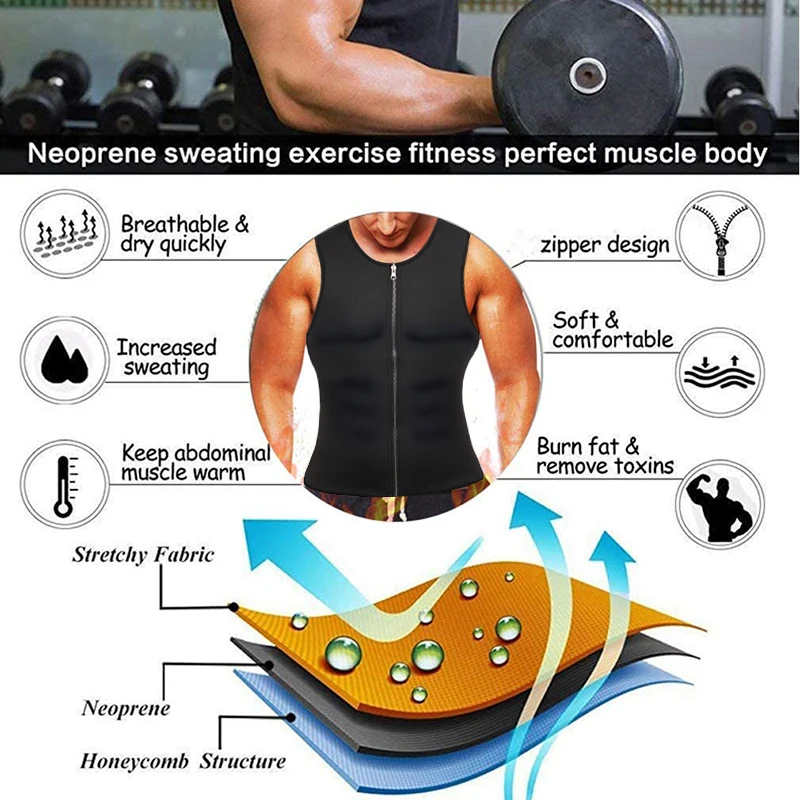 Этот жилет для сауны для мужчин изготовлен из неопрена и синтетических материалов из полиэстера, дышащий и регулируемый, достаточно гибкий для движения, помогает вам быстро потевать.