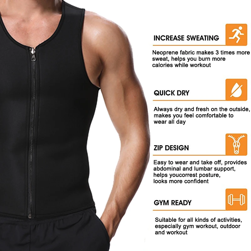 🔥Точно напишите мне и выберите лучший размер: Пожалуйста, выберите подходящий размер в соответствии с нашей таблицей размеров.🔥Мужской спортивный жилет: мужской спортивный жилет-сауна помогает выровнять живот, укрепить мышцы спины, исправить осанку. Неопреновая ткань впитывает в 4 раза больше пота, помогает сжечь больше калорий. И он может держать тепло тела дольше, что вы не почувствуете себя слишком усталым. У нас большой выбор размеров, вы всегда можете выбрать один вариант. 🔥Быстросохнущая молния: легко носить и снимать. Высококачественный неопреновый материал поглощает пот, увеличивая температуру тела, поэтому вы всегда будете сухими и свежими на улице. Мужская майка-сауна можно носить под обычными рубашками, что поможет вам быстрее и проще достичь цели фитнеса. 🔥Нагрев и поддержка: мужской жилет для сауны для похудения может нагревать и увеличивать температуру тела, когда он связывается с кожей. Кроме того, он обеспечивает поддержку живота и поясницы, помогает исправить осанку, выглядит более уверенно. Благодаря суперэластичной ткани вы будете чувствовать себя комфортно в носке весь день. Подходит для всех видов деятельности, особенно для тренировок в спортзале, тренировок на открытом воздухе и MMA. 🔥Инструкции по стирке: при первом получении жилета для сауны запах неопрена является нормальным. Ручная стирка в холодной воде с мягким моющим средством. Не сушить в сушильной машине.