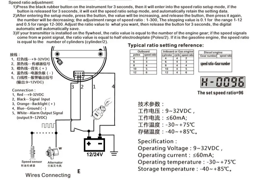 Диапазон индикации:0 ~ 8000 об/мин