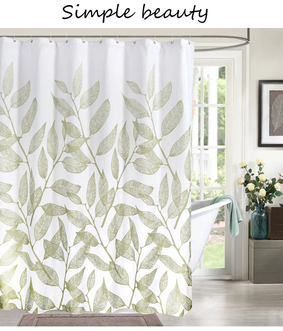 Зеленые занавески для душа с принтом листьев растений, простая элегантная занавеска для ванной комнаты, высокое качество, водонепроницаемая полиэфирная ткань, занавеска для ванной