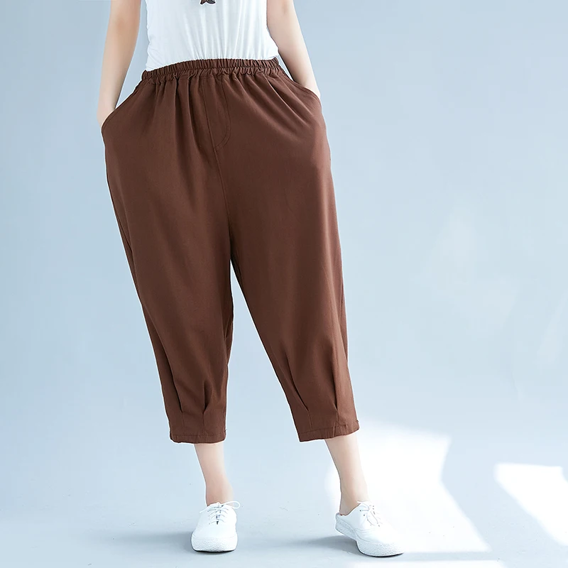 Женские хлопковые брюки Новые широкие модные женские однотонные юбки со