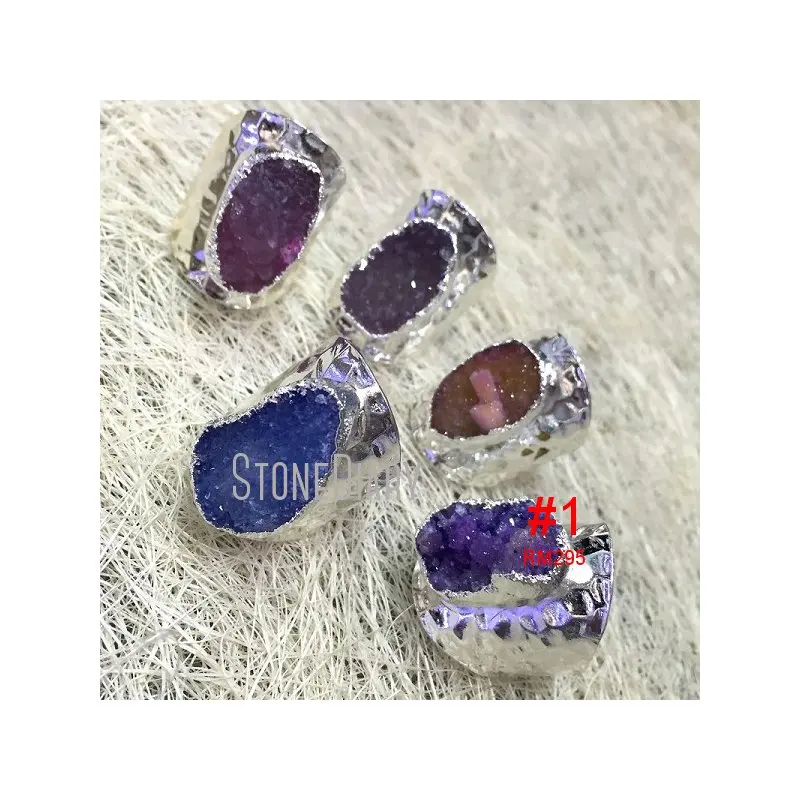 RM938 смешанный цвет кулон Agates Druzy кольцо посеребренное кольцо неправильной формы регулируемое