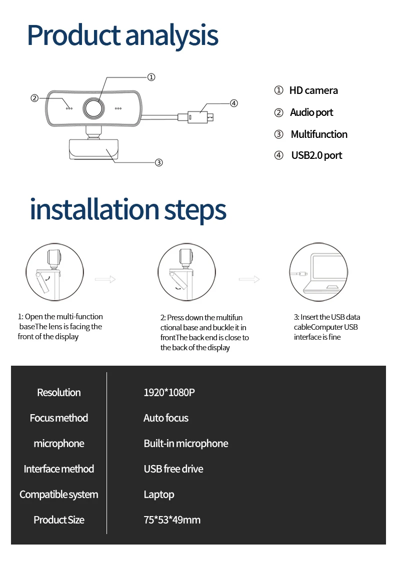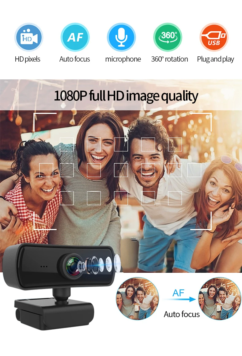 AONI Webcam Mega HD Computer PC Camera With Built-in Noise Reduction MIC For Laptop Desktop USB Drive Free Web Cam Webcameras