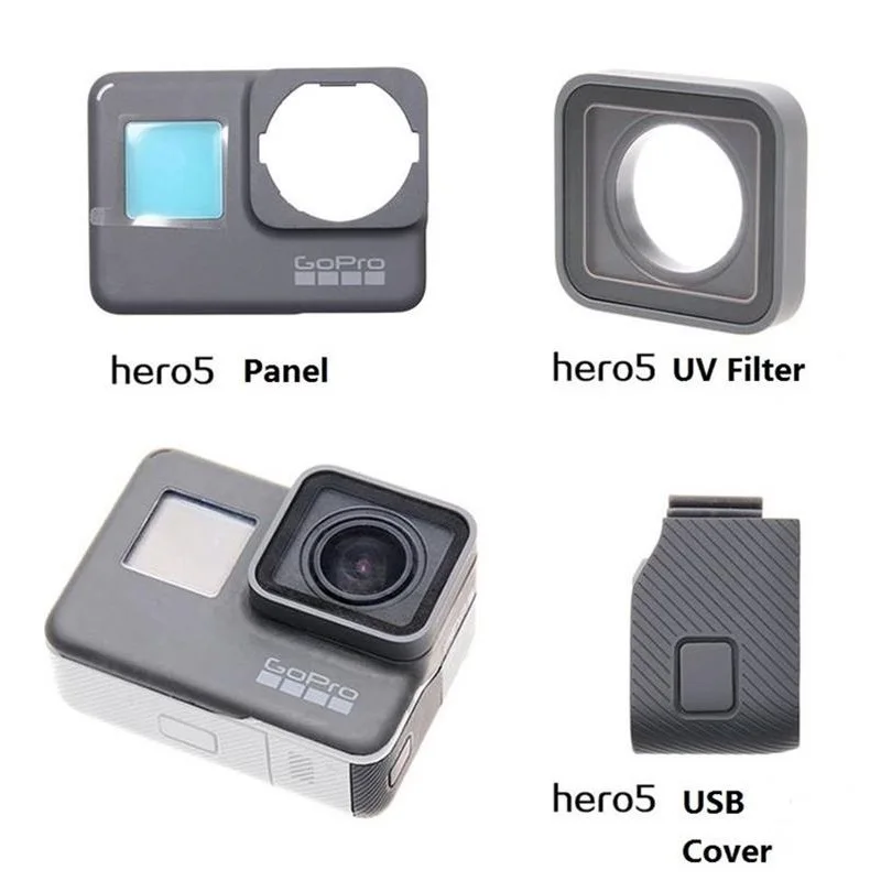 Для экшн-Камеры GoPro Hero 4/5 /6/7/8/9 черный оригинал/обычные аксессуары GoPro 7/8/9 Камера Рамка передней двери, передняя панель Панель/стекло с УФ фильтром объектив/Батарея крышка/USB крышка чехол для iPhone X/iphone/Плитка рамочная Спортивная Камара аксессуары