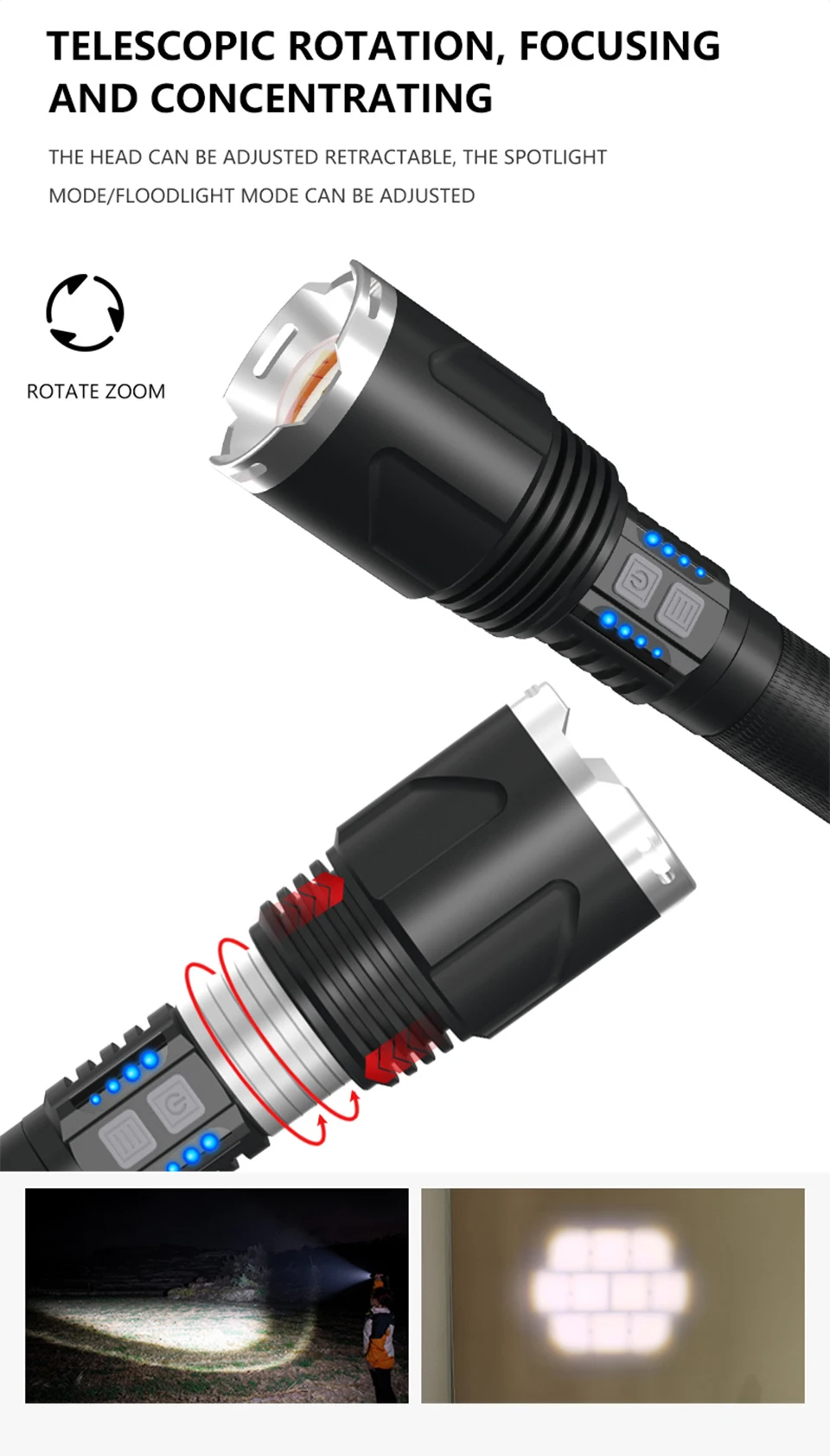 3 Switch Modes: Strong Light-Weak Light- Flash
