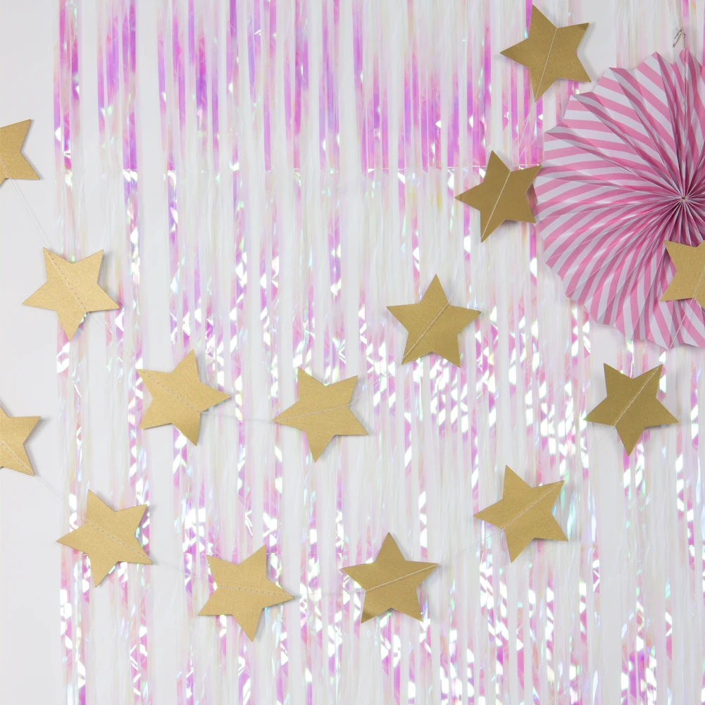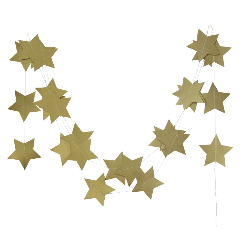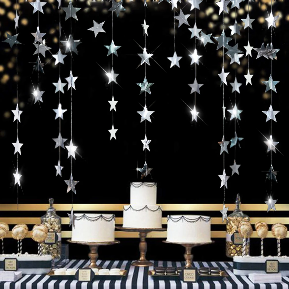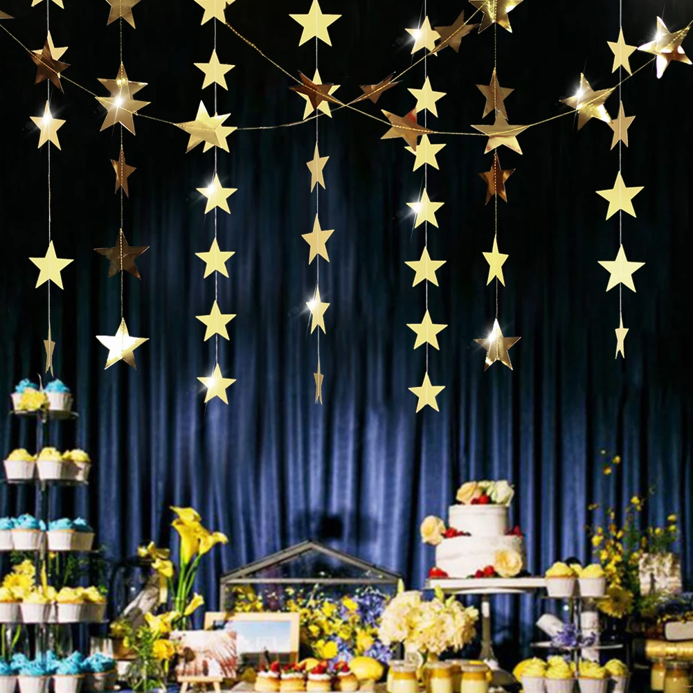 Золотые звезды, подвесные гирлянды, украшения 4 м для окон, двери, потолочные Декорации для дома, свадьбы, дня рождения, вечеринки