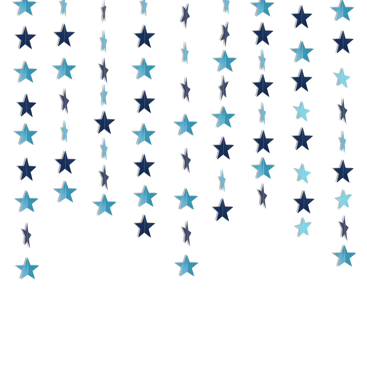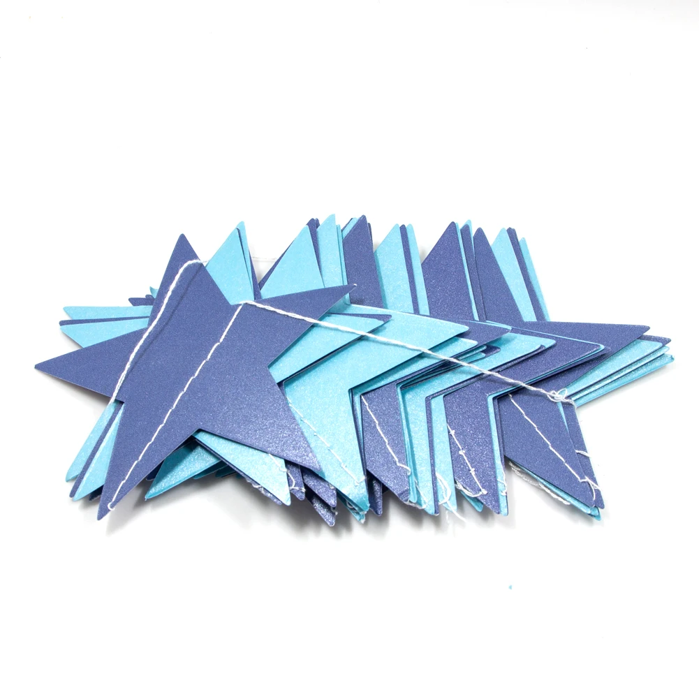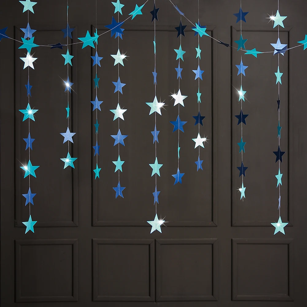• Каждая гирлянда имеет 30 звезд длиной приблизительно и 4 м. • Размер звезд: ширина около 10 см. • Пространство между звездами: 5 см. • Цвета: золотой, серебряный, синий.