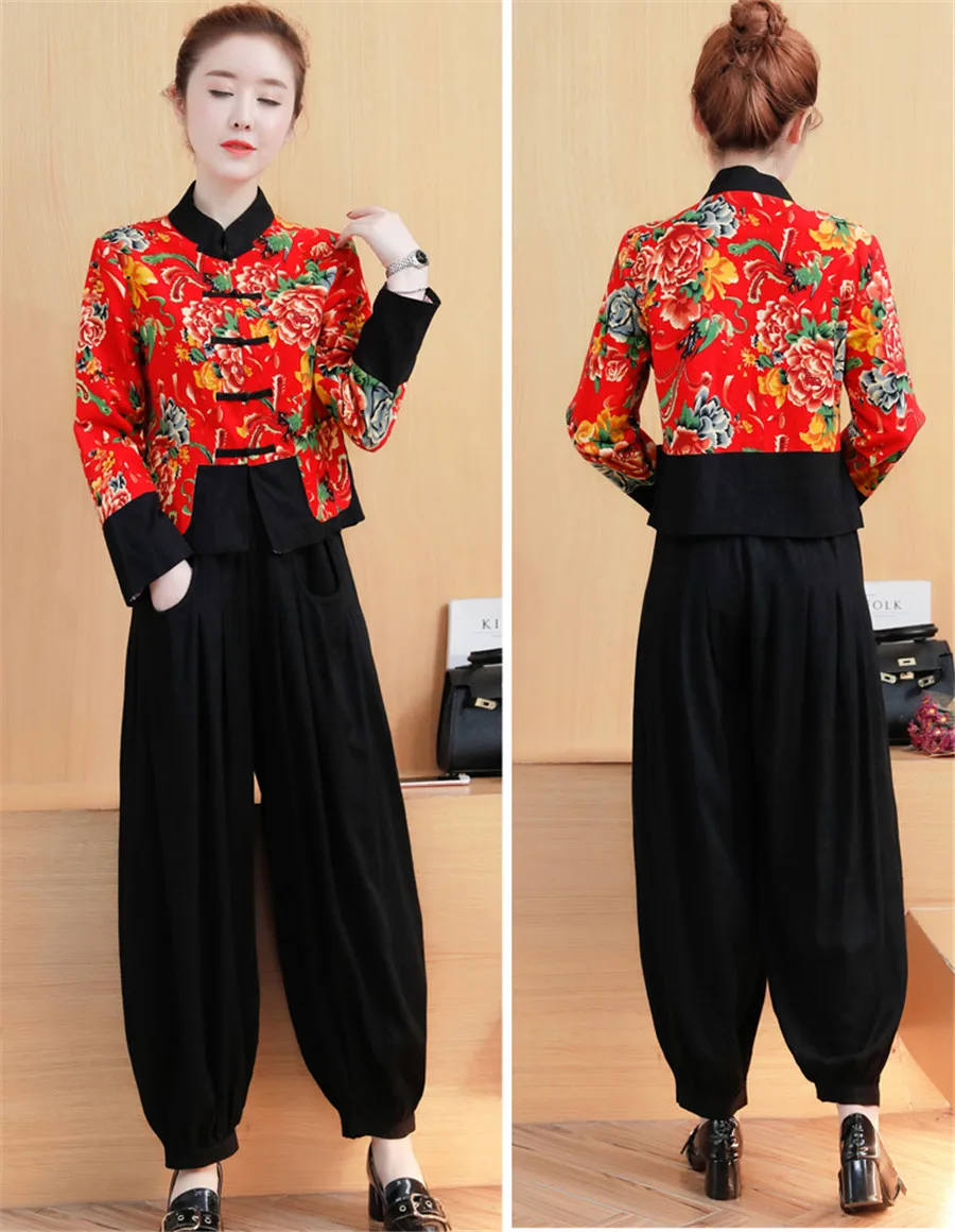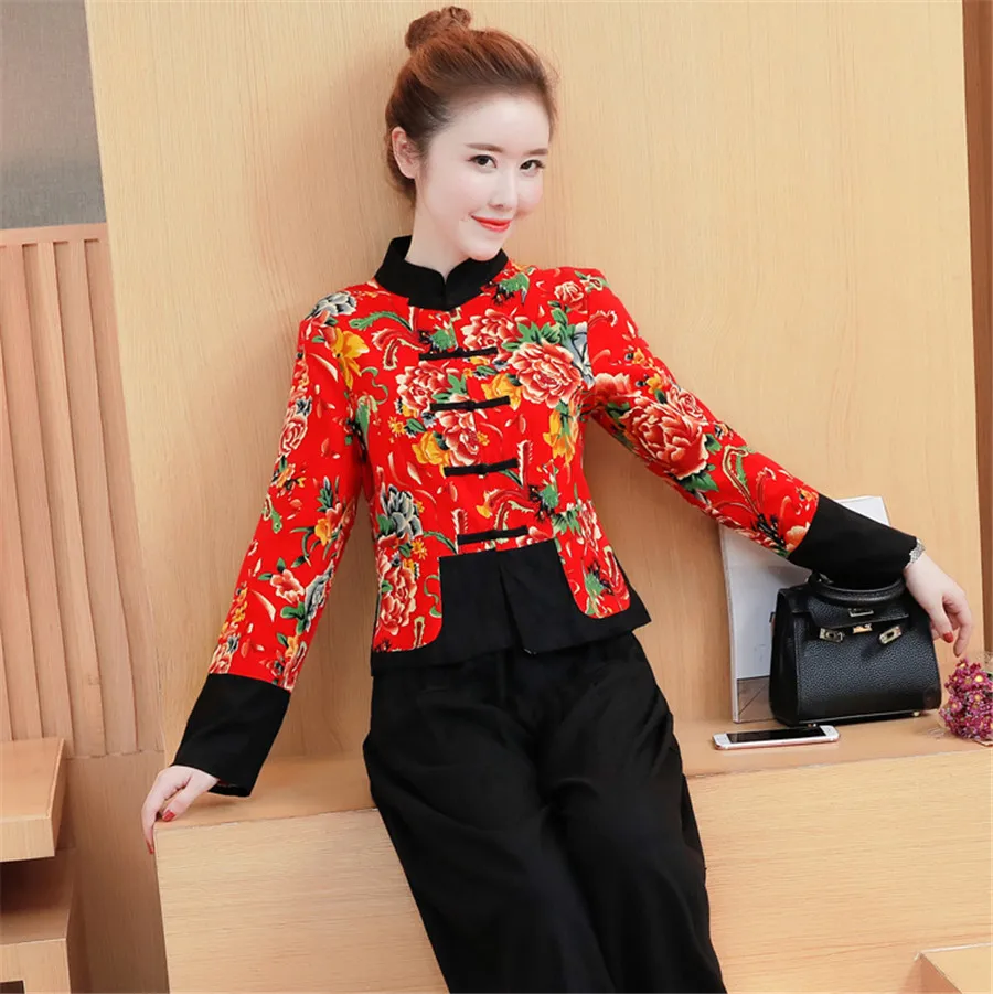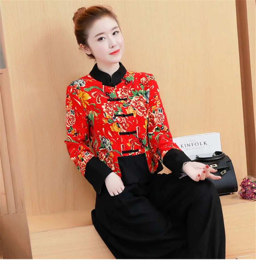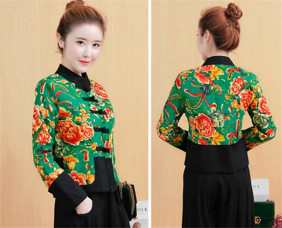 Женское пальто с принтом из хлопка и льна, Новинка осени 2020, женское приталенное пальто в национальном стиле ретро, короткое пальто с длинным рукавом для женщин DAN059
