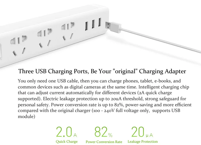 XiaoMi power strip с изящным белым дизайном, таким же тонким, как карандаш case3 розетки питания и 3 usb-порта, и поддержка быстрой зарядки 2A