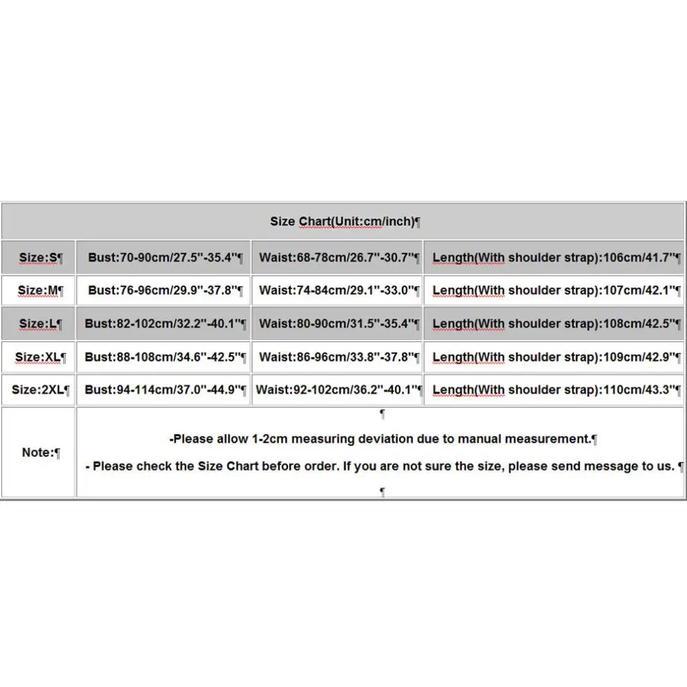 | Размеры: 2XL | Бюст: 94-114 см/37,0 "-44,9" | Обхват талии: 92-102 см/36,2 "-40,1" | Длина (с плечевым ремнем):110 см/43,3" |