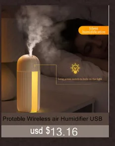 Товар: мини-портативный увлажнитель Материал: АБС + ПП Резервуар для воды: 300 мл Размер: 80*80*162 (мм) Цвет: белый, розовый, желтый Мощность: 0,74 W Напряжение AC/DC 3,7 V Особенности: 1. Яркий светильник 2.Портативный USB способ зарядки Соединяет пути: 1. Зарядное устройство для телефона 2. Дополнительный внешний аккумулятор 3. Usb-порт для ноутбука Посылка включает в себя: 1. Увлажнитель * 1 2.USB кабель * 13. Руководство * 1