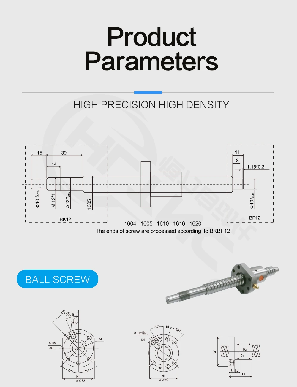 1 шт. D16 мм шариковый винт с гайкой (С торцевой обработкой) Длина может быть изменена, если нет длины, которая вам нужна, пожалуйста, свяжитесь с нами.