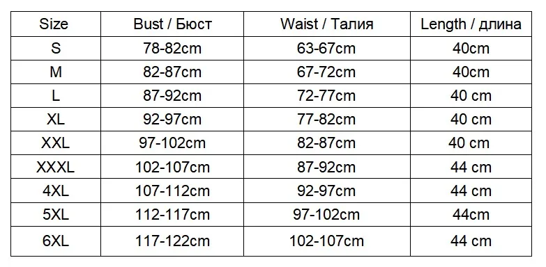 Размеры: S-6XL