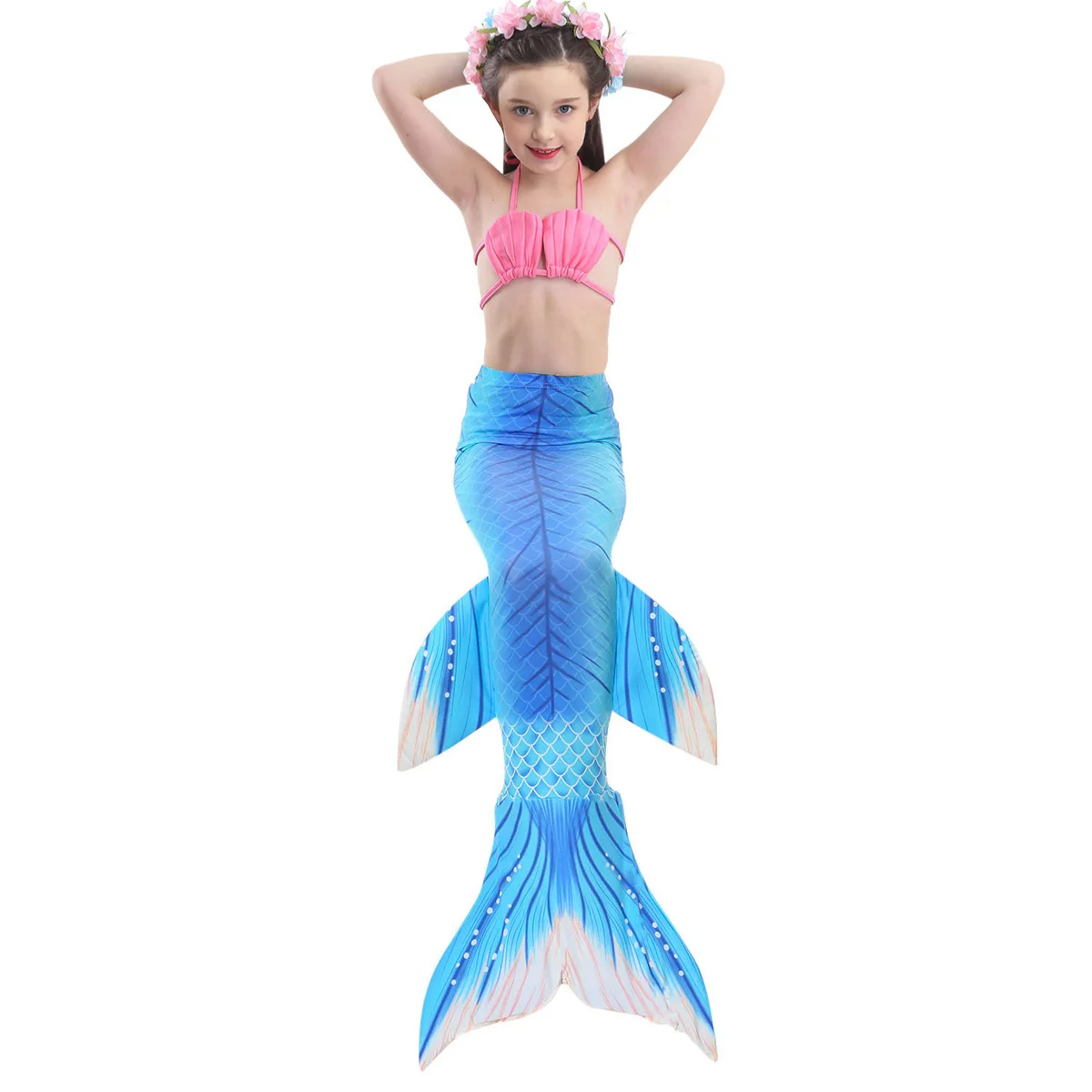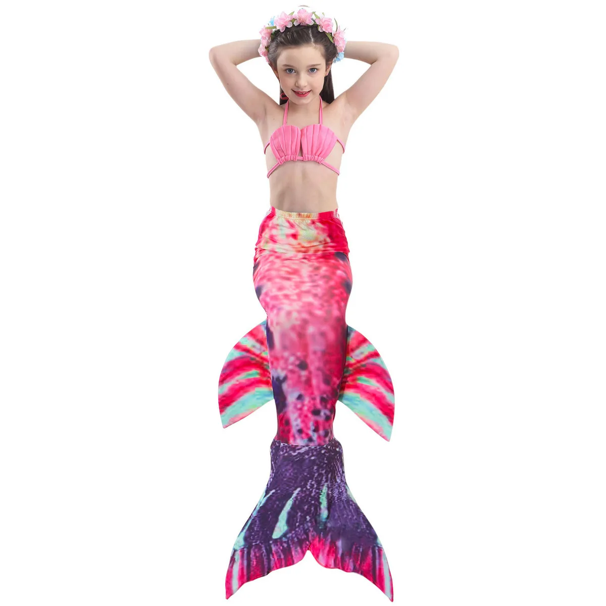 Детский костюм Русалочки Ариэль для девочек; Хвост русалки для плавания с моноластами для маленьких девочек; Вечерние детские купальные костюмы