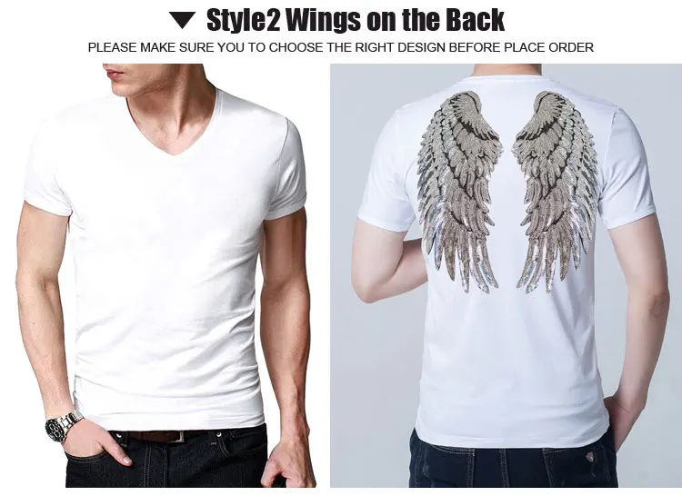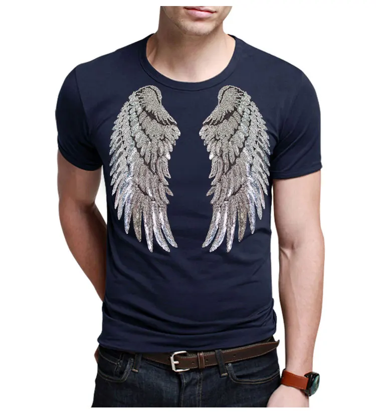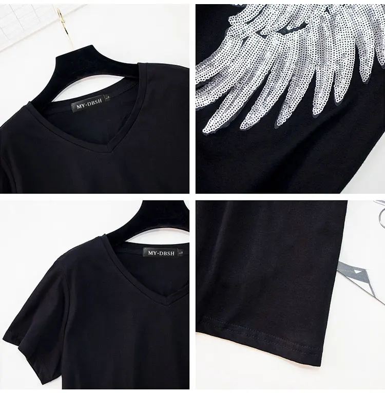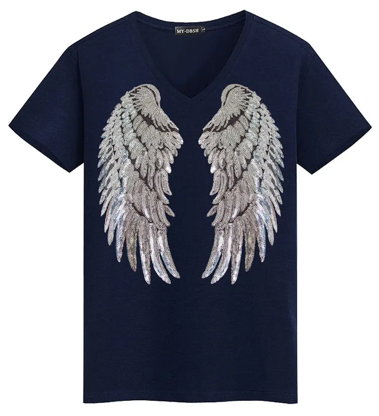 Новый стиль Харадзюку дизайн лето блесток унисекс футболки Повседневная мода Крылья Ангела топы вышивка короткий рукав тонкие футболки | ||
