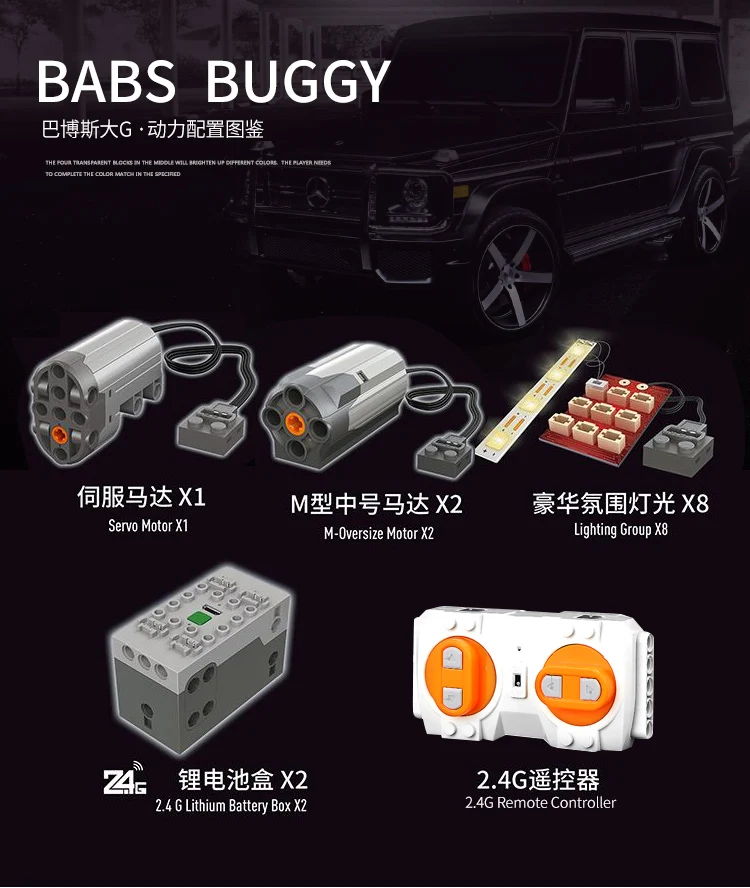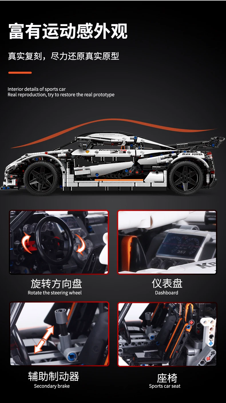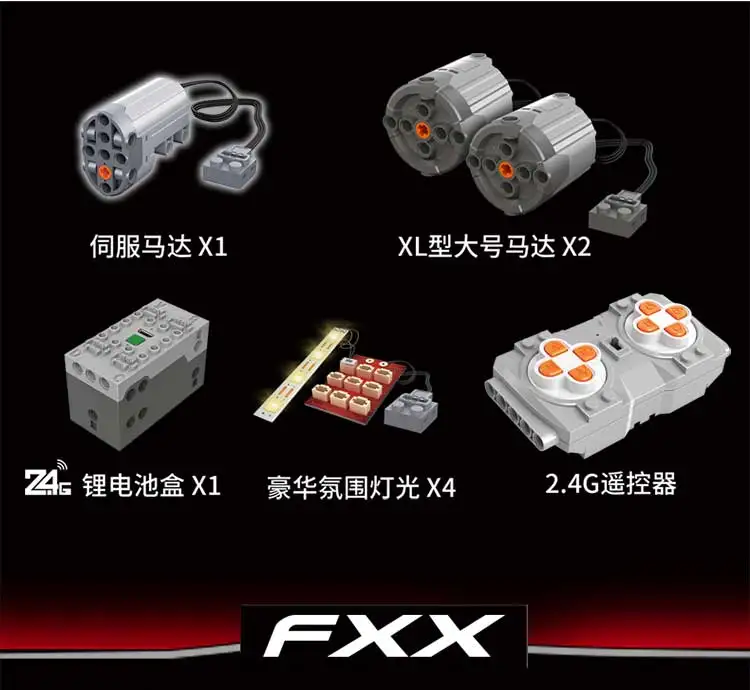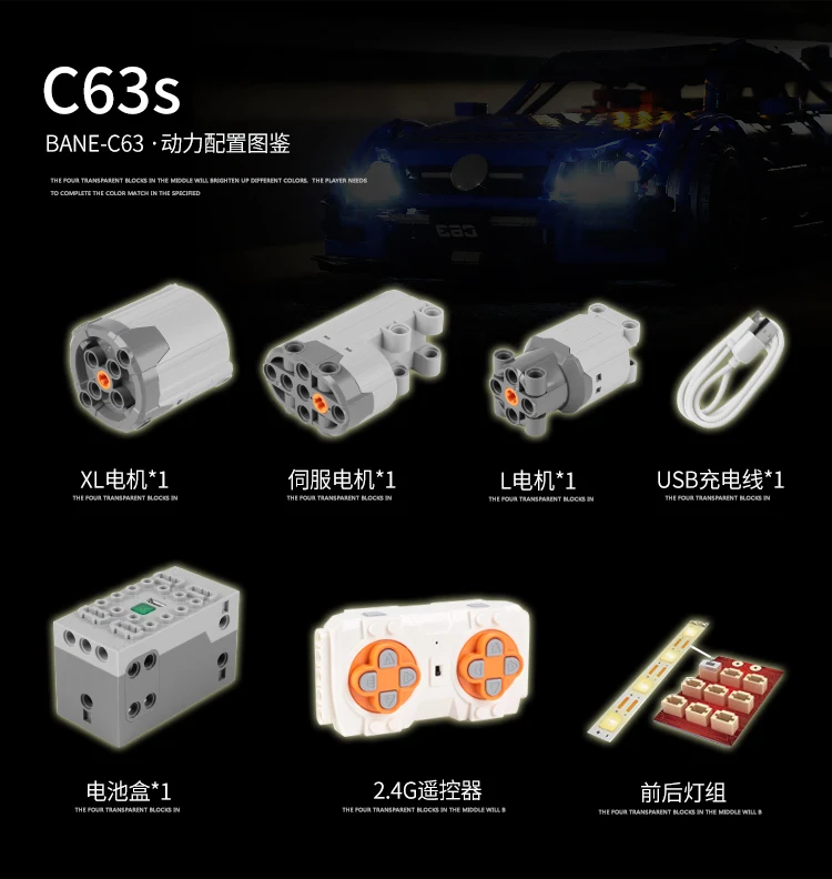 1. 13120/3063 шт/Koenigsegg (статическая версия); 2. 13070/1641 шт/BABS Багги (с функцией питания); 3. 13073/1989 шт/Буле C63 (с функцией питания); 4. 13074/2270 шт/белый C63 (статическая версия); 5. 13079/2535 шт/VENENO (с функцией питания); 6. 13085/2101 шт/FXX (с функцией питания); 7. 13088/2578 шт/Сибирский Завоеватель (с power funtion); 8. 13090/3228 шт/Porsche P1 (статическая версия); 9. 13107/2590 шт/механический кран (статическая версия); 10,13108/2943 шт/Hoonicorn RTR (статическая версия); 11 13130/4062 шт/экскаватор (с мощностью); 12,13172/3358 шт/GT3 (статическая версия);