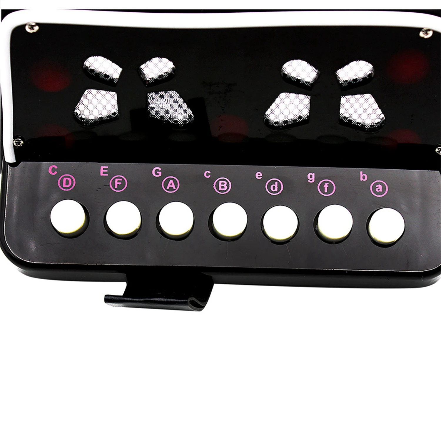 Семь кнопок, две басовые кнопки и один воздушный клапан.