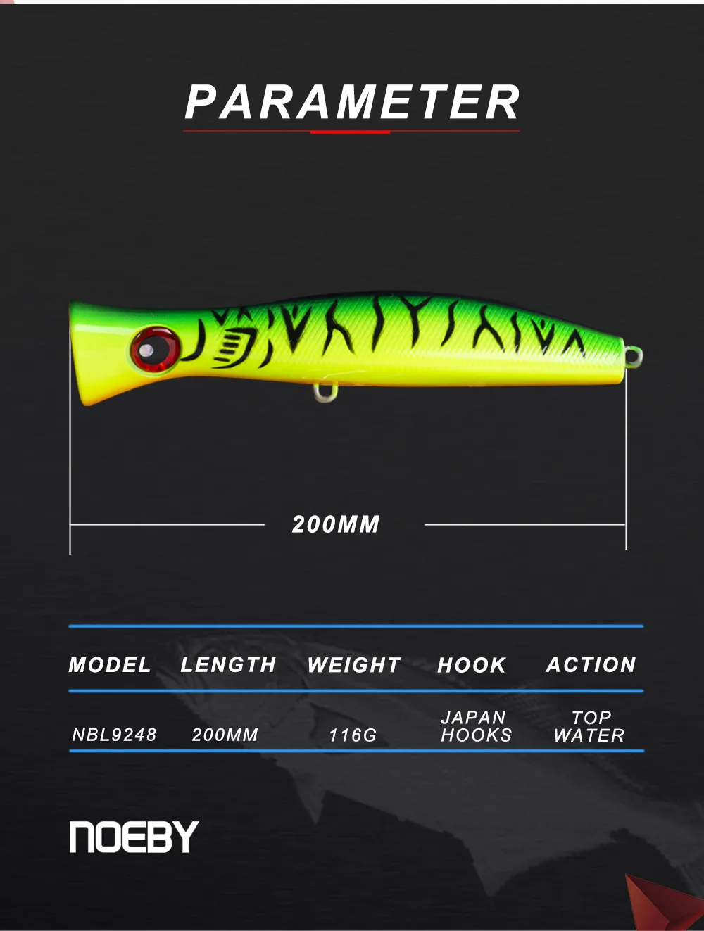 NOEBY 2 шт./пакет Троллинг Поппер приманка 200 мм 116 г Большой Топ воды жесткие приманки с 3X укрепить VMC крючок для GT тунец марлина NBL9248