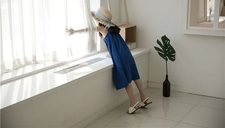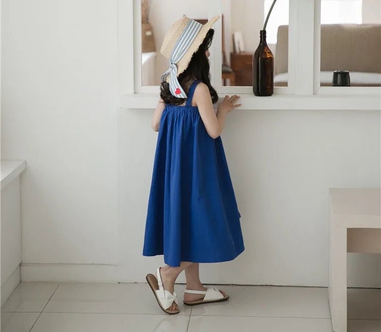 Платья до середины икры без Рукавов Синего цвета для маленьких и больших девочек, одежда для детей, осень-весна-лето 2019