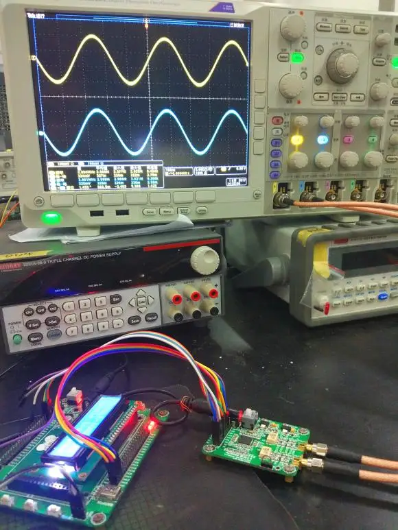 Краткое описание модуляAD9959 состоит из четырех прямых цифровых синтезаторов (DDS) ядер, каждый из которых обеспечивает независимое управление частотой, фазой и амплитудой. Каждый канал имеет независимый высокой скорости 10 бит DAC. Каждый канал имеет специальную 32 бит контроля частоты слово, 14 бит точности фазового сдвига и 10 бит выхода пропорциональный множителя. Он может быть использован для исправления дисбалансов, вызванных аналоговой обработкой или несоответствием макета печатной платы между сигналами. Поскольку все каналы имеют общие системные часы, они имеют внутреннюю синхронизацию и поддерживают синхронизацию нескольких устройств.AD9959 может выполнять до 16 частоты заказа, фазовую или амплитудную модуляцию (FSK, PSK, ASK). Модулируя данные в режим контактов, модуляция может быть выполнена. Кроме того, AD9959 также поддерживает линейную частоту, амплитуду или фазовое сканирование, которое подходит для радаров, приборов и других приложений.
