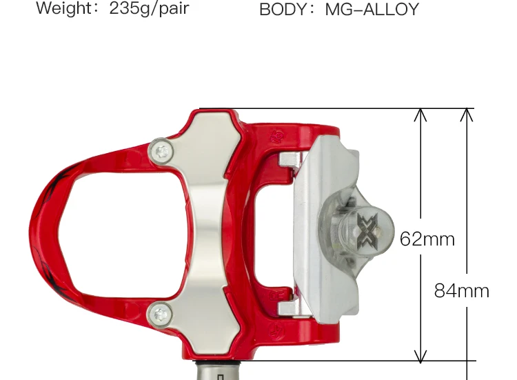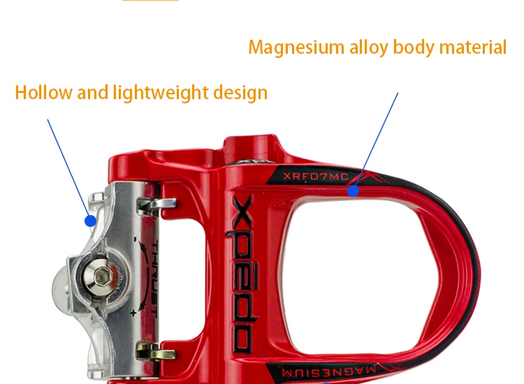 Бренд: XPEDO Модель: XRF07MC Использование: Дорожные велосипеды Происхождение: Китай-Тайвань Размер: 62*92*33 мм Подшипник: 3 герметичных подшипника Вес: 235 г/пара Корпус: MG-ALLOY ● Магниевый корпус ● Шпиндель Cromoly ● Негабаритная поверхность платформы 62 мм ● Микрорегулируемая система удержания Posi-Lock ● Тройные подшипники картриджа ● Включает в себя два набора бутсов: фиксированный и 6 °