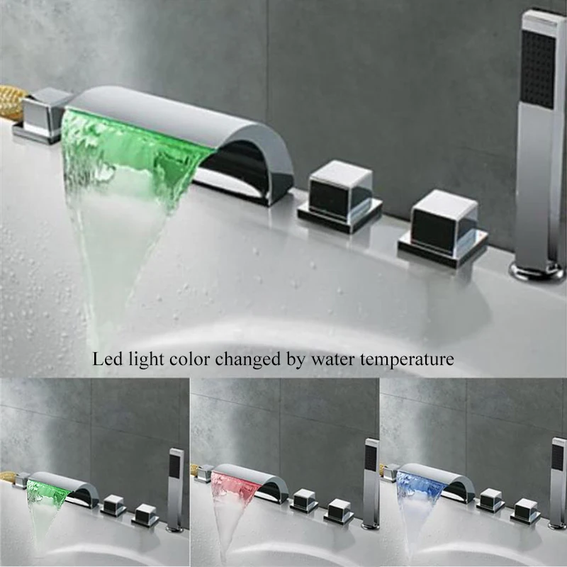 Ulgksd светодиодный кран с водопадом, 5 шт., кран для ванны, масло, втирают, бронзовый смеситель, кран для ванной комнаты, душевой кран с ручным душем, Torneiras