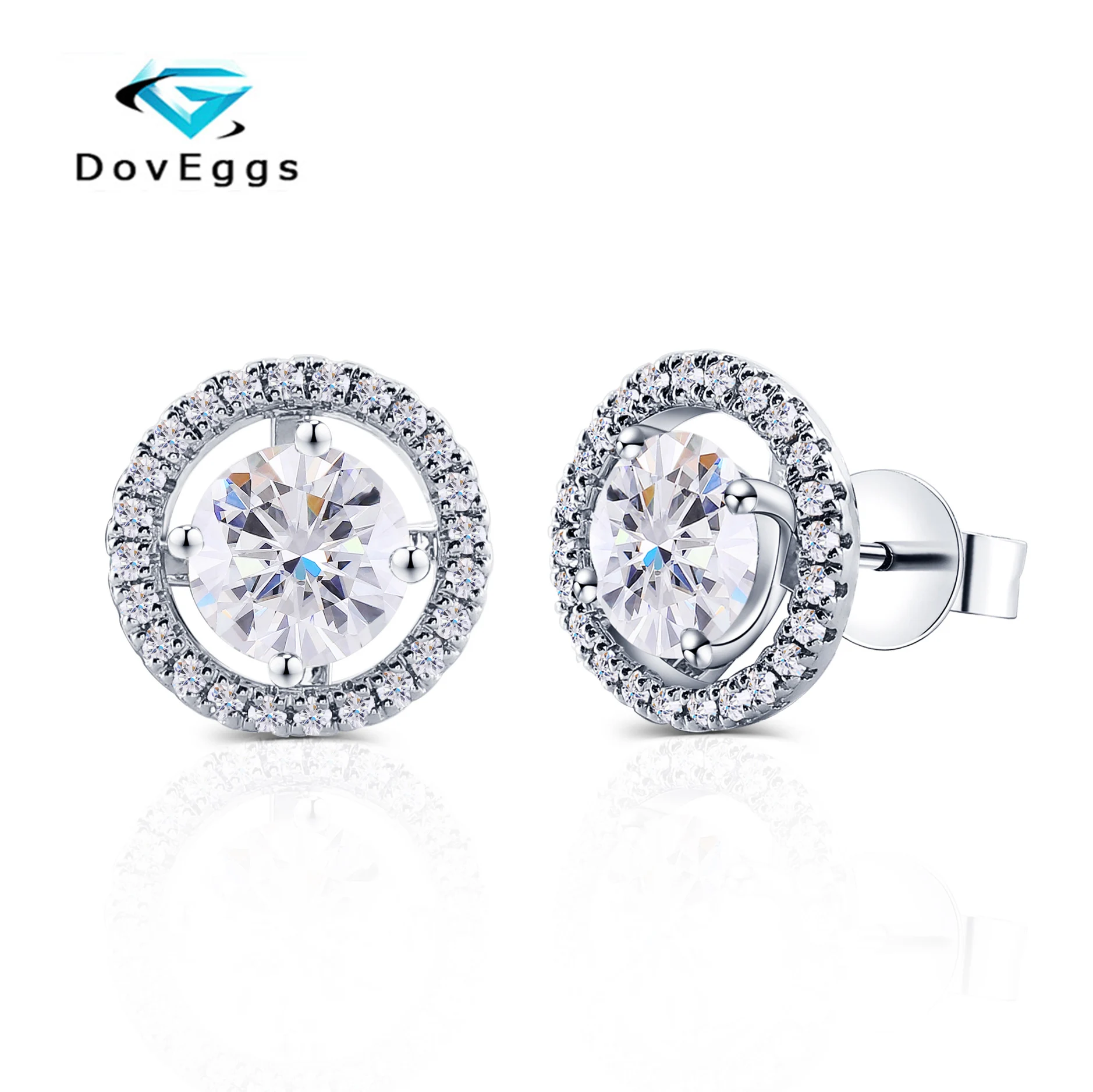 DovEggs 10K белое золото 2.24CTW 6,5 мм цвет GH серьги-гвоздики с муассанитом серьги с куртками Платиновое Покрытие серебро пуш-ап для Для женщин