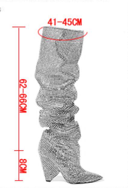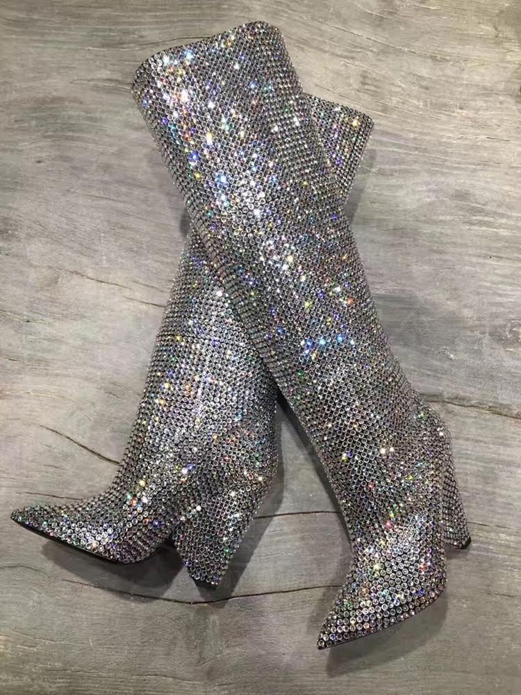 | Сапоги до колена из ткани с блестками, роскошная дизайнерская обувь для женщин с блестками и перфорацией, пикантная Праздничная обувь знаменитостей на необычном каблуке