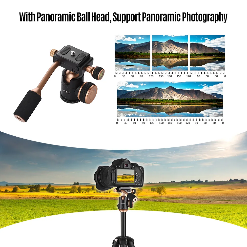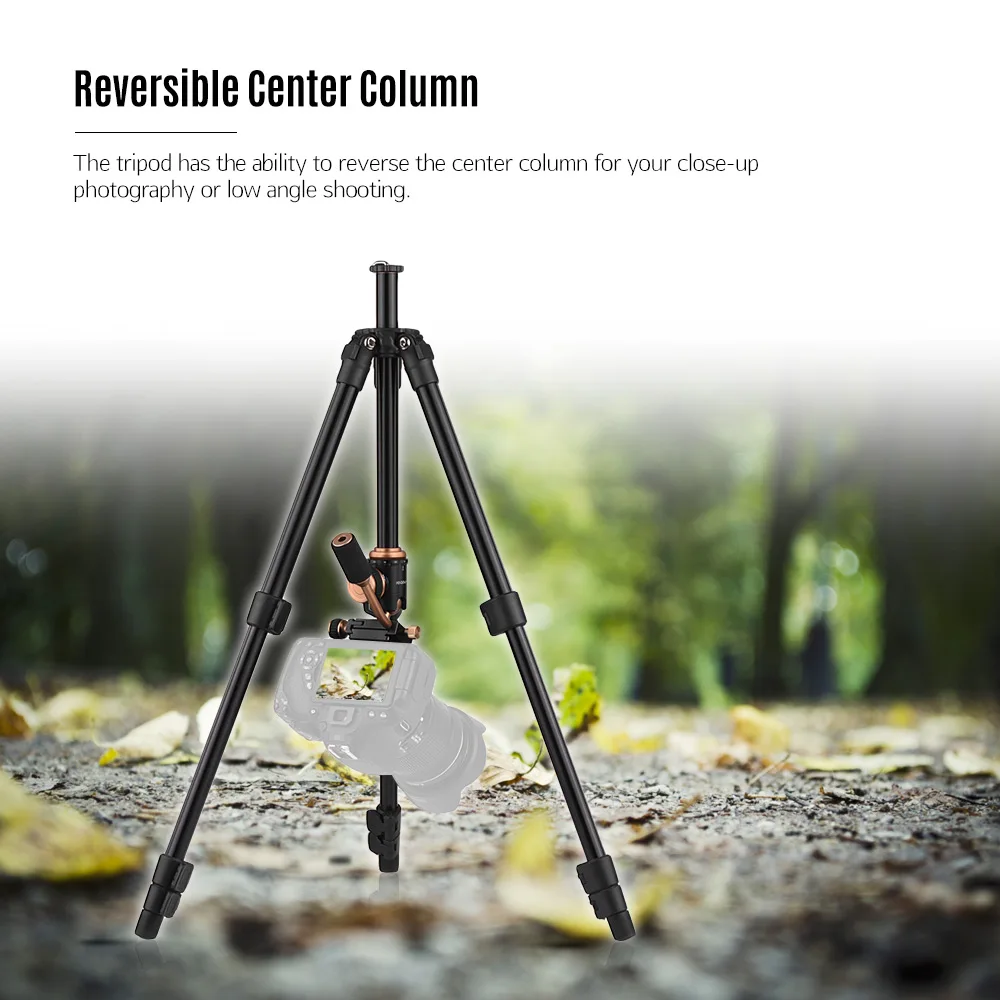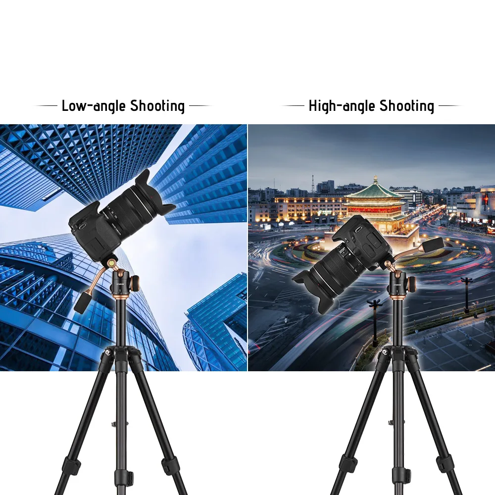 СПанорамная шаровая Головка, Штатив может поддерживатьПанорамная съемка,Вертикальная съемкаИли другой угол наклона съемки. Его обратимая центральная колонка также гарантируетСъемка крупным планом или съемка под низким углом.