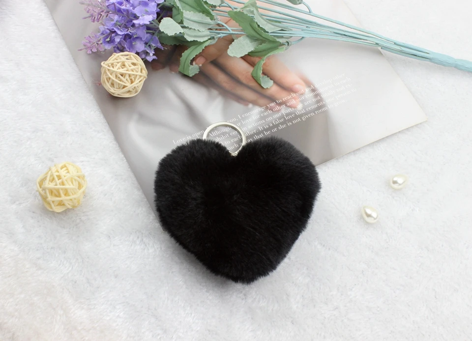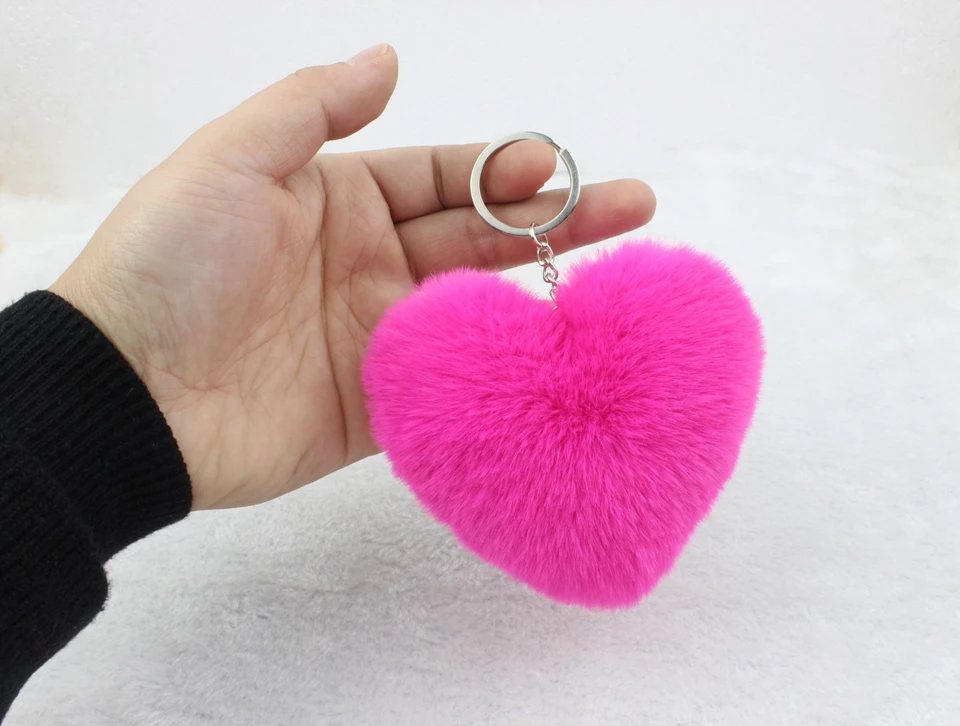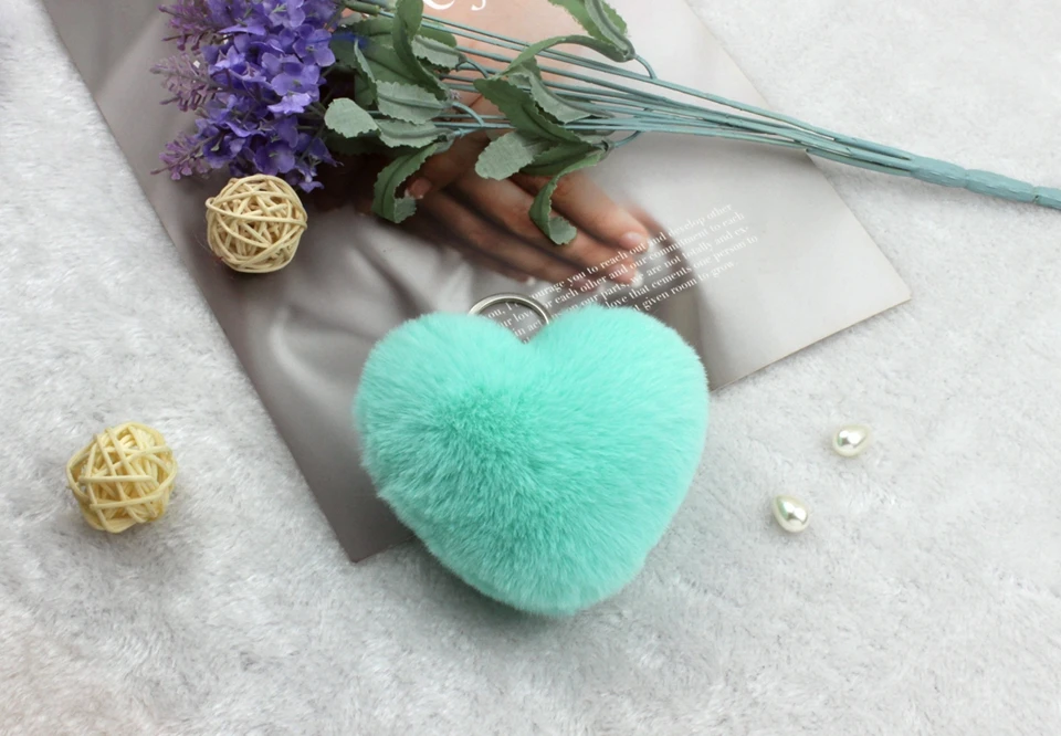 Название:Милые пушистые брелки в виде сердца, женские Брелки с помпонами из искусственного меха кролика Рекс, брелки для девочек, сумка, Висячие автомобильные брелки, ювелирные изделия, аксессуары