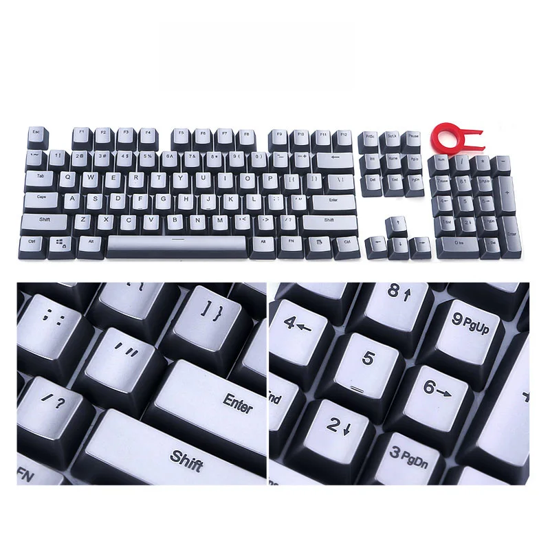 Набор ключей и только Съемник ключей, не включает клавиатуру и пластиковый лоток. (Макет США) 104 Keycaps для механической клавиатуры Cherry MX, Khail, Gateron механические keyswitches, все mx стильные переключатели Поддержка подсветки, сама клавишная крышка не имеет подсветки Совместимая стандартная клавиатура 81/87/104