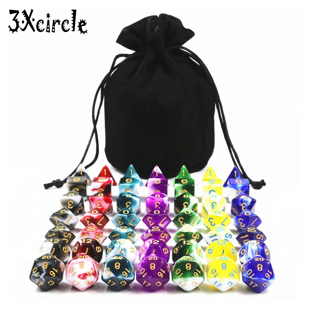 Высокое качество 1 креативный 7 шт./лот D4,D6,D8,D10,D10 %,D12,D20 Dnd Rpg TRPG Красочный Блестящий набор цифровых игральных костей для настольной игры