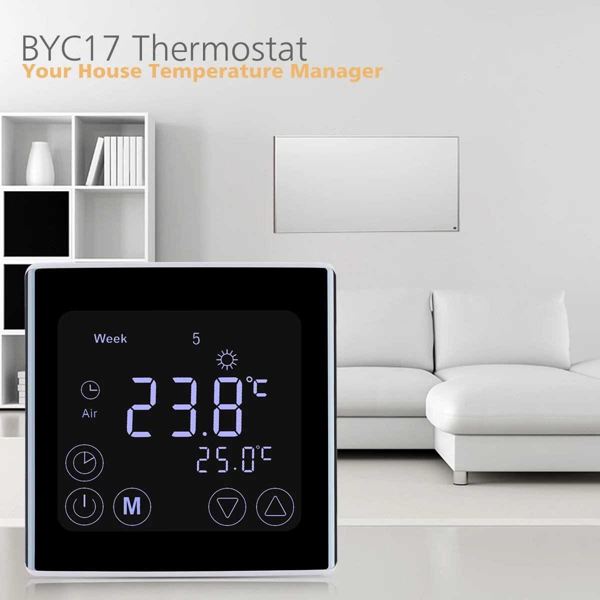 Этот термостат с ЖК-дисплеем с еженедельным программированием использует новейшие технологии компьютерного управления, иЕго применение-это оборудование для нагрева воды и настенный котел.В соответствии с заданной температурой термостат автоматически запустит и остановит управляемый объект(Водяной клапан, система нагрева воды, настенный котел и т. д.).Этот термостат имеет более тонкий дизайн, а большой квадратный ЖК-экран обеспечивает лучший пользовательский опыт контроля температуры.