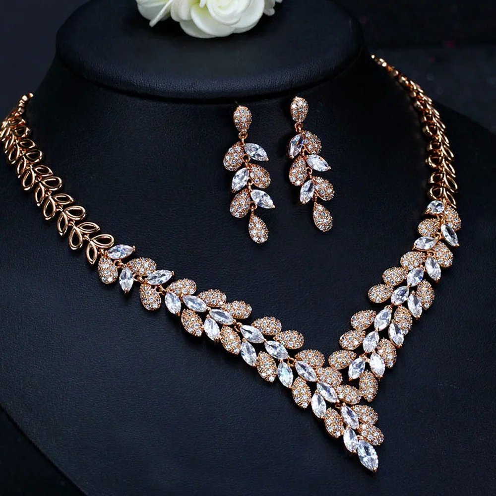 ThreeGraces роскошный Нигерийский Африканский большой лист форма синий фианит свадебное ожерелье и серьги для свадебного подарка JS086
