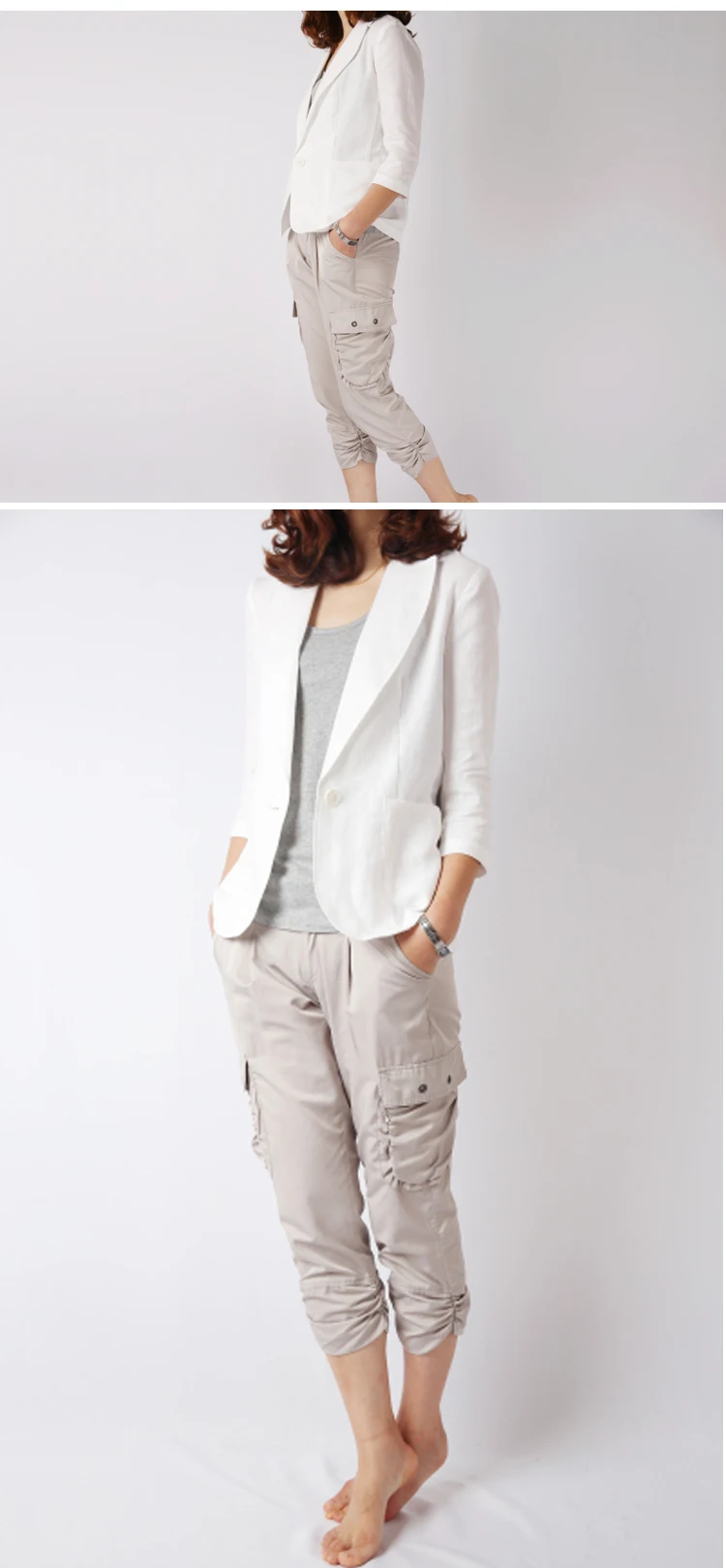 Женский приталенный Блейзер, офисный Блейзер белого и синего цвета с рукавом 3/4, приталенный Блейзер размера плюс, лето-осень 2019