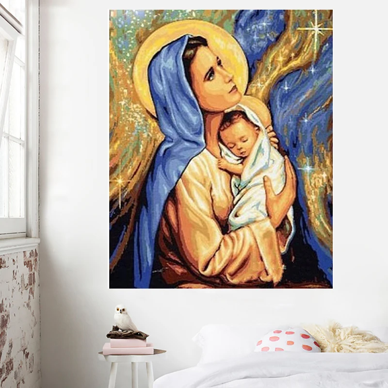 5D "сделай сам" Мэри и Иконка Иисуса Алмазная вышивка иглой подарок полный круглые стразы наклеивать алмазов картина Религия дома decorationn