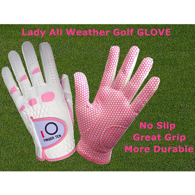 Женские перчатки для гольфа Finger Ten, женские перчатки для гольфа с правой рукой Lh Rh, резиновые перчатки для дождливой погоды, размер маленький, средний, большой, XL, все погодные условия, Прямая поставка