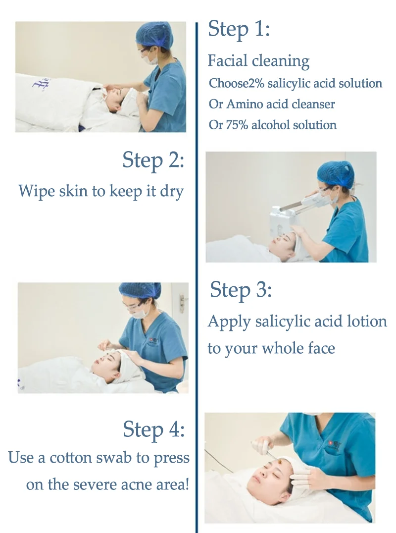 Салициловая кислота состоит из следующих показаний, таких как акне, уилк, розацеа, хлоазма, воспаление, пигментация, веснушки, веснушки синий ubber-bleb nevus, легкий и умеренный солнечный светильник для старения и грубой кожи, салициловая кислота почти может использоваться на всех типах кожи, может использоваться различный цвет кожиУказания для использования: