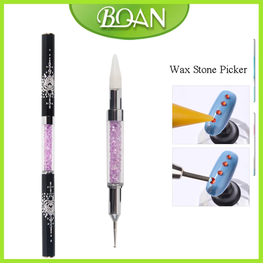 BQAN 1 шт. двойная Концевая ручка для ногтей Хрустальная ручка для бисера гвоздики со стразами восковый карандаш для маникюра инструмент для дизайна ногтей