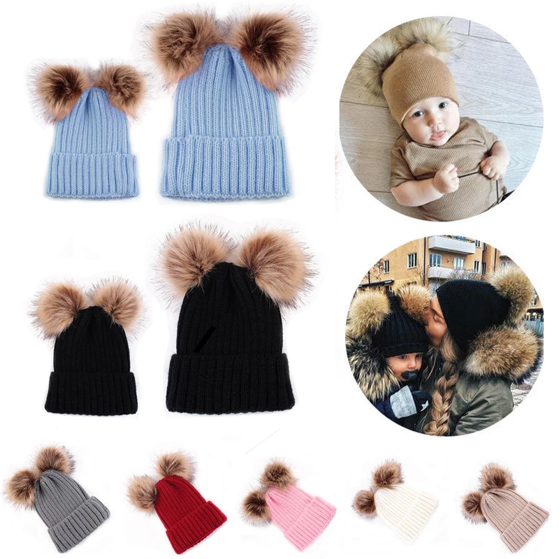 Унисекс Детские Зимние теплые шапки Чепчики для девочек шерстяные вязаные шапочки 2017 мода Рекс кролик меховой помпон Детские кепки и шапки