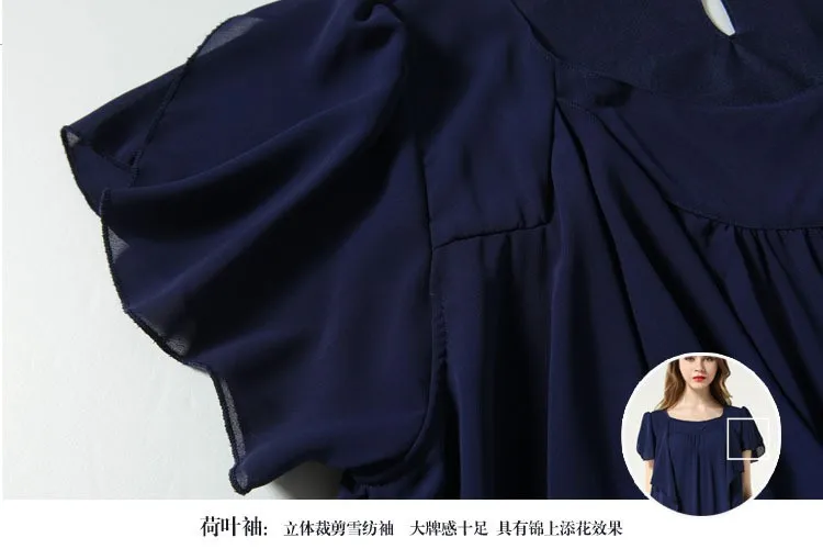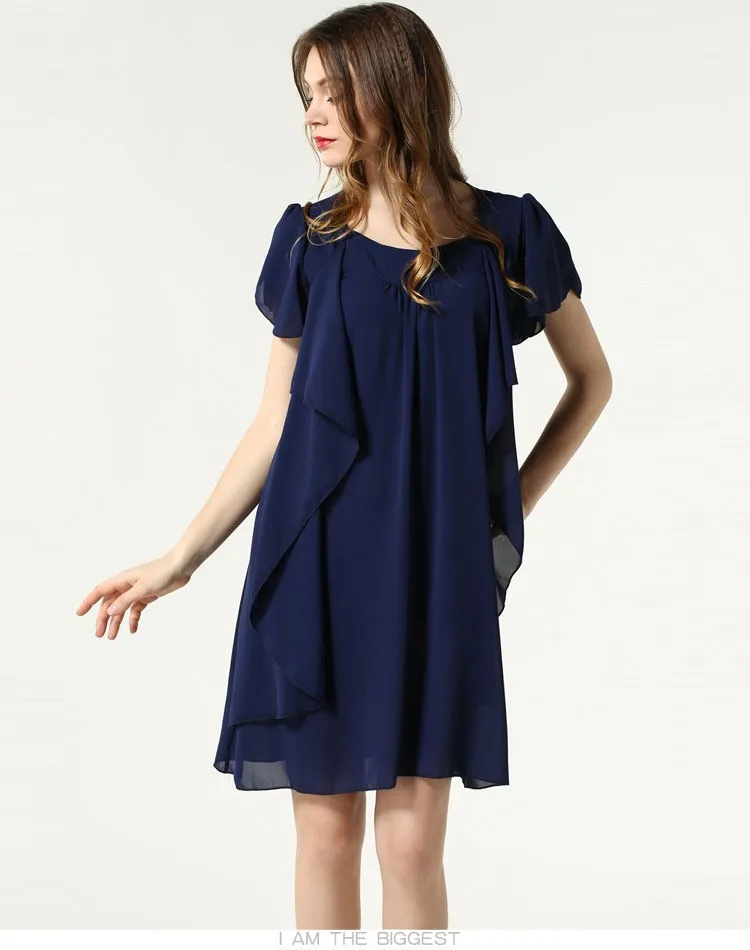 Летнее платье с круглым вырезом и рукавом-бабочкой, свободное шифоновое платье L, XL, XXL, XXXL, 4XL, 5XL размера плюс, женская одежда черного/темно-синего цвета