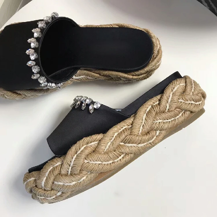 Женские тапочки на толстой платформе и высоком каблуке; Цвет розовый, синий; Атласные шелковые шлепанцы с украшением в виде кристаллов; Коллекция 2021 года; Летние уличные сандалии; Mujer