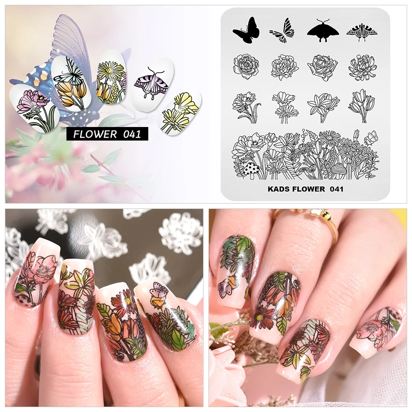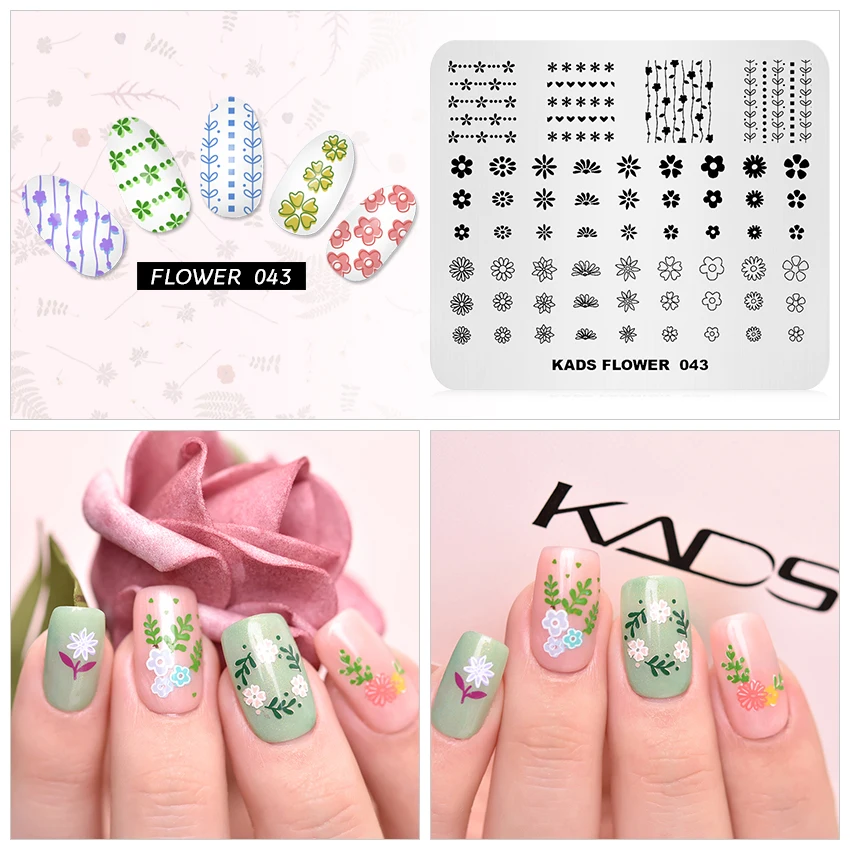 Трафареты KADS для стемпинга ногтей пластины маникюра и нейл арта с цветами 17